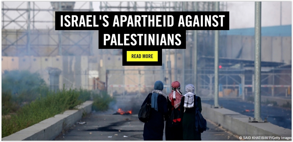 Em maio de 2021, um relatório da Human Rights Watch (HRW), baseado numa investigação de dois anos e em duas décadas de trabalho em Israel e nos territórios ocupados, chegou à mesma conclusão de que o crime contra a humanidade de apartheid é cometido pelo governo de Israel.