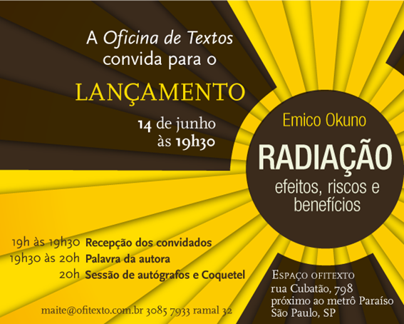 Portanto, é com felicidade imensa que compartilho com vocês o lançamento do mais novo livro dessa mestra muito querida : Radiação: efeitos, riscos e benefícios.