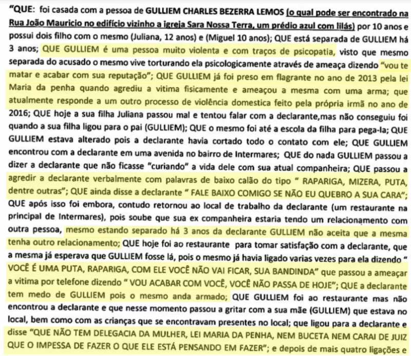 Durante a campanha, o fogo amigo contra Gulliem/Julian incluiu denúncias (verdadeiras) de que ele havia sido condenado por falsidade ideológica, respondia a processos trabalhistas e pela Lei Maria da Penha, por agredir a esposa e a irmã.