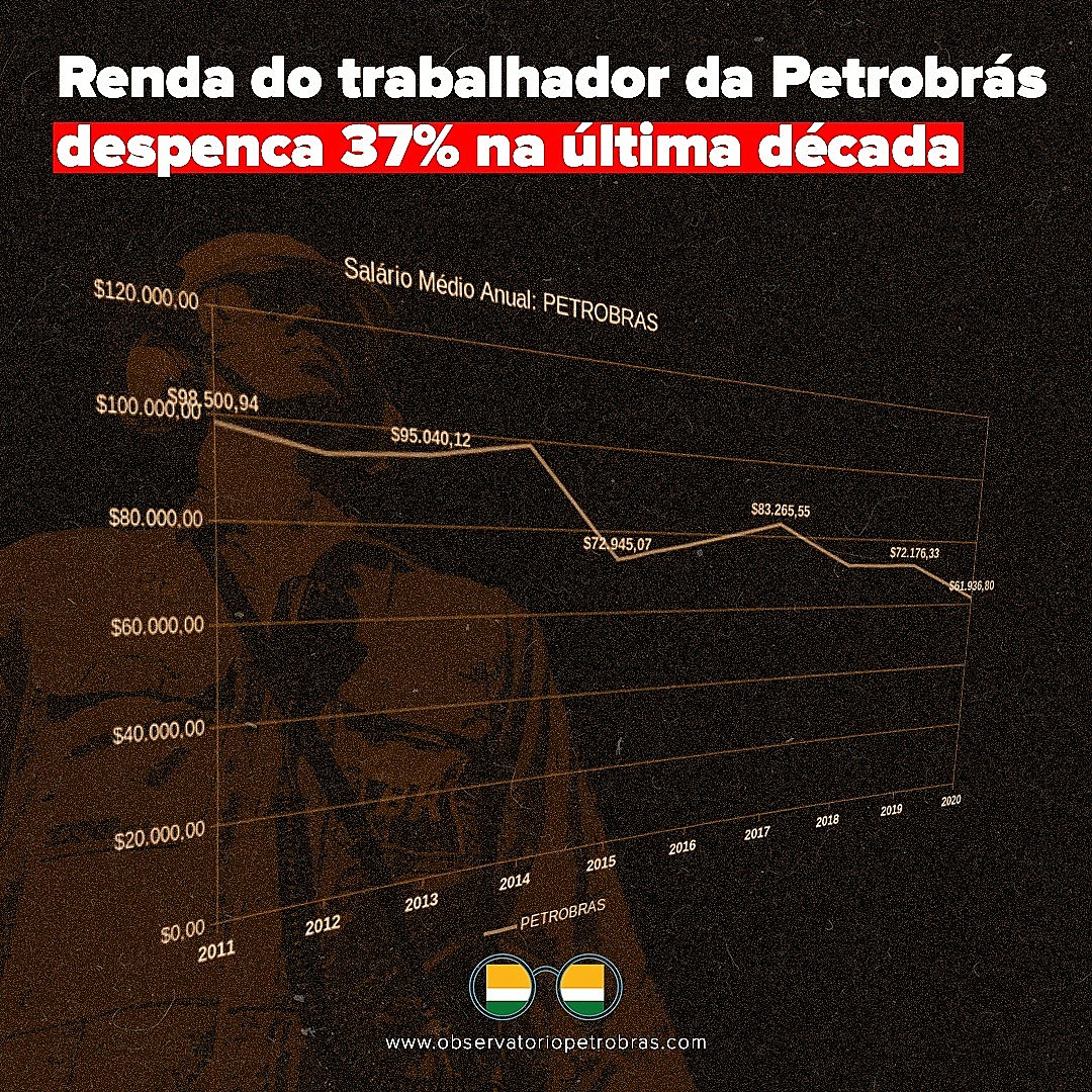 “Na última década, em todas as empresas consideradas no estudo, houve crescimento nominal da remuneração média dos trabalhadores. A única exceção foi a Total. Mas, enquanto na empresa francesa a retração dos salários foi de 9,94%, na Petrobrás a redução chegou a 37%. Ou seja, uma diferença quase quatro vezes maior”.