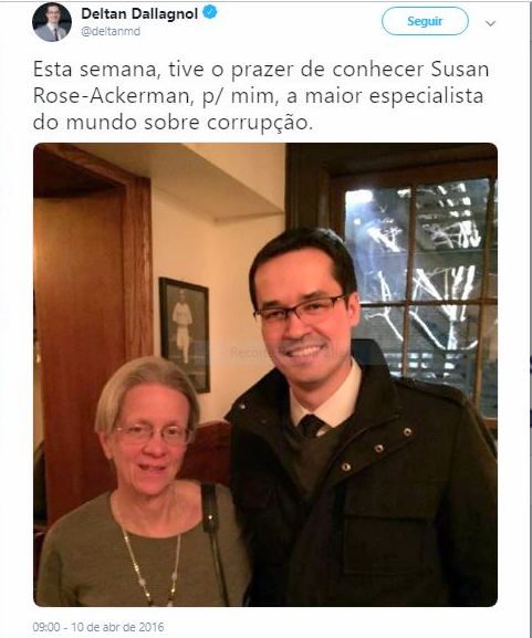 Na verdade, não. O que Dallagnol faz quando se derrete em elogios a Susan Rose-Ackerman é exercitar sua particular – e peculiar – leitura do que é dito pela intelectual.