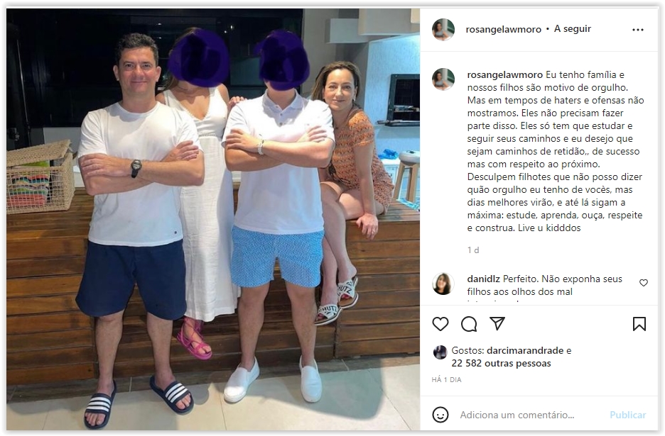 “Como a Rosângela Moro posta uma coisa dessas, depois da ação contra o Moro? Deu atestado de consciência de que estava expondo as crianças, logo, ‘exposição culposa'”.