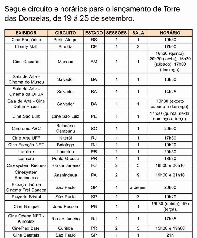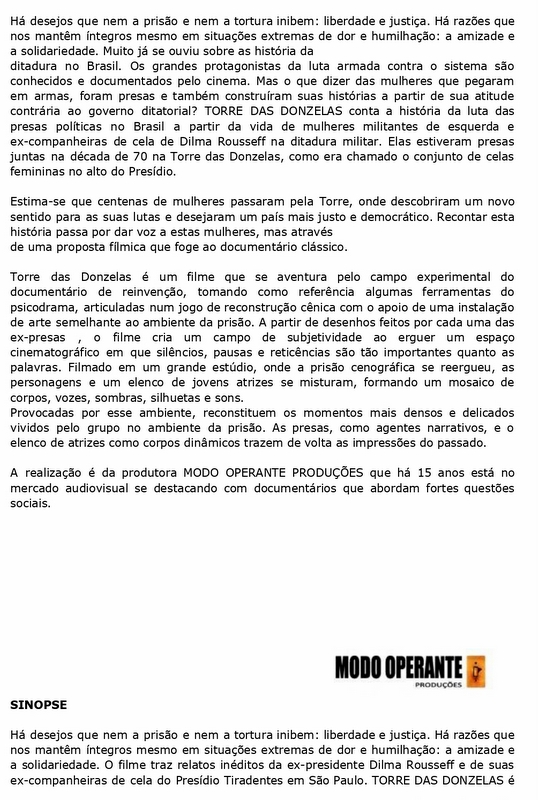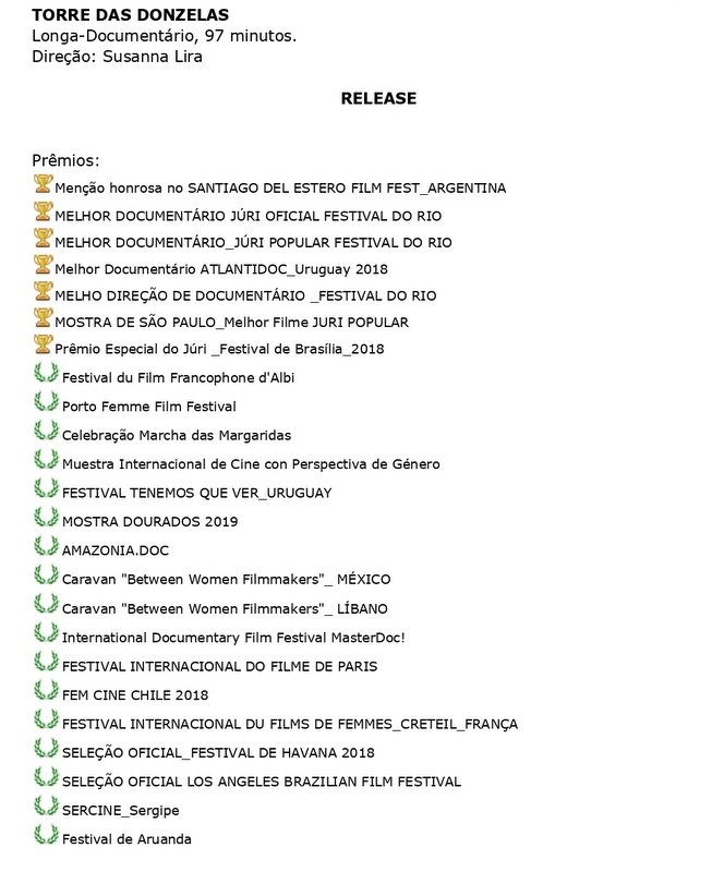 Nesta quinta-feira, 19/09, entra em cartaz em São Paulo, Brasília, Porto Alegre, Salvador, Curitiba, Manaus e João Pessoa (veja lista ao final) Torre das Donzelas, um dos documentários mais premiados no Brasil nos últimos anos.